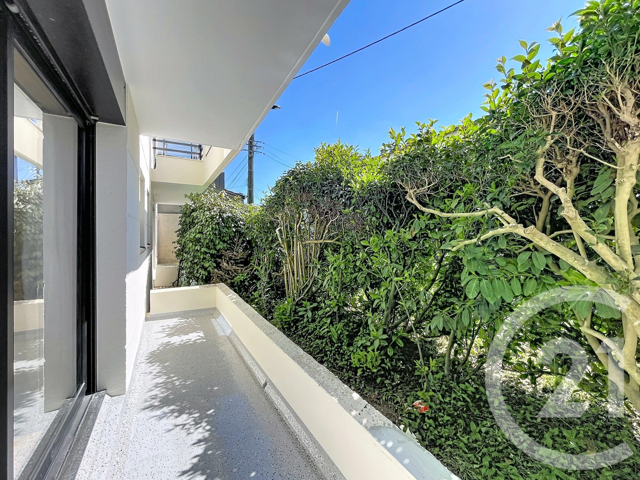 Côté extérieur, une agréable terrasse donnant sur de la verdure vous permettra de profiter pleinement du calme environnant.